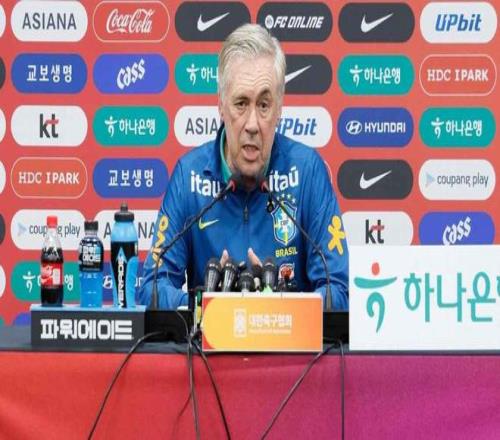 友谊赛对阵韩国赛前,巴西国家队主帅安切洛蒂出席了新闻发布会。